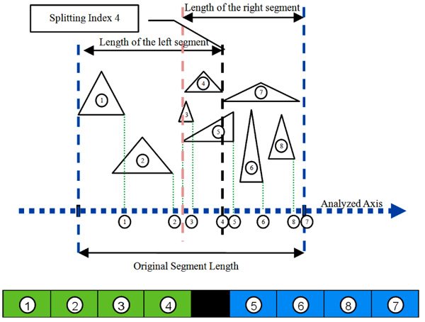 Fig. (2). Example of triangles' split on the projecting axis.