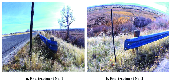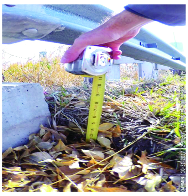 As a side note, approximately, many sections had around 13 cm (5 inches) of accumulated dirt at the bottom of the end-treatments’ posts. For this reason, despite the correct installation of the 78 cm (31-inch) height, the existing height of guardrails was measured as 66 cm (26 inches) which make a high-severity damage based on Table 1. This point is shown clearly in Fig. (7).