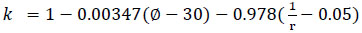 Step 3: Determine the correction factor (k) for the multilane roundabout; for example, where the entry angle is 550 and entry radius is 30m;