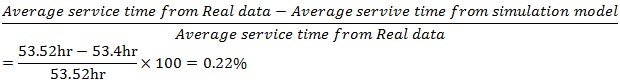 In the absence of real data, we can use the queuing theory to test the model, to be able to evaluate the model results. We got the correlation coefficient between the theoretical and model’s results as R2 =0.9886. Hence, the performance of the simulation model is correct.