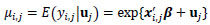 where yij is the accident count from the ith segment of the jth roadway, uj is the random effect for the jth roadway, β is the vector of fixed-effects model parameters, xi,j is the design-vector for the ith segment of the jth roadway, and u~N(0,σ2).