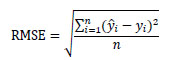To assess our model, we observe the root mean squared error, or RMSE, given by