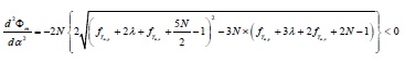Although two roots are possible for the quadratic expression resulting from the 1st derivative, the other root does not maximize the perception score as shown in the Appendix. The second derivative of Φm with respect to α gives,