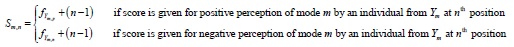 Therefore, the expression for the perception score, Sm,n, developed by an individual from Ym individuals who is at the nth observing position of posts for mode m is expressed as: