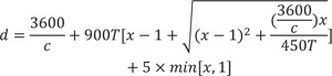 However, equation (5) is limited so that the combined entry and circulating flow cannot exceed 1,800 vehicles per hour. This occurs when the circulating flow is about 1,291 vehicles per hour. At higher flow rates, the entry capacity is the difference between 1,800 vehicles per hour and the circulating flow.