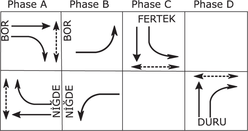 Signalized intersections are the type of intersection in which the sequence and duration of flows at the intersection are provided by the lights. Generally, this type of intersection is used on roads with high traffic volume. Accurate calculation of signaling in urban traffic will also greatly affect traffic patterns at intersections. The signalized intersection is designed to regulate traffic (minimize disturbances, discipline), reduce accidents, minimize vehicle delays, and optimize road capacity (clustering vehicles and minimizing time losses) and calming traffic. The increase in the number of intersections with the control signal system in the central island is remarkable in recent years in Turkey. Sometimes these intersections are also described as signalized roundabouts (Fig. 1).