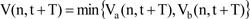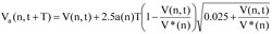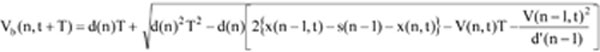 The speed of the vehicle (n) during time interval (t, t+T) is the minimum of the values obtained with expressions (1) and (2):