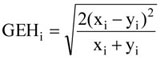 With data of Table 2., using Eq. (7), results GEH = 90%.