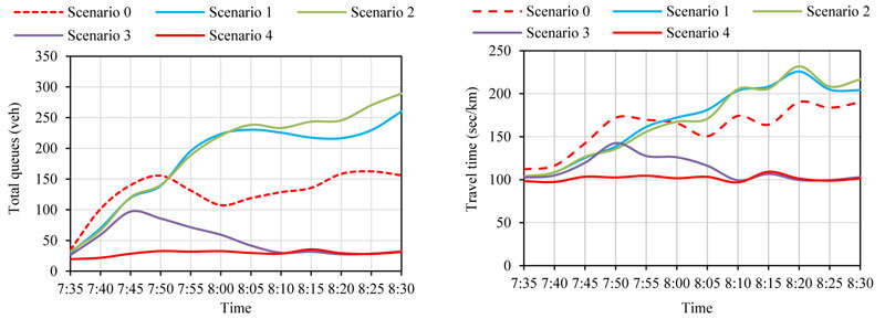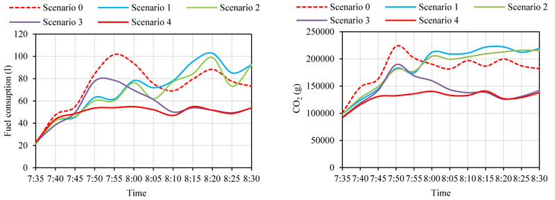 Moreover, queues were measured in several streets of the analyzed road network (Table 2).
