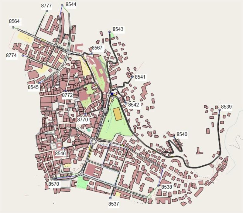 The area under analysis is characterized both by local and crossing flows coming from different zones of Trento. Especially on the streets “Via Venezia” and “Via Grazioli” queues of hundred meters can be detected, caused by high values of local traffic demand and signalized intersections very close together.