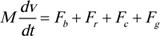 Where M is the total weight of the train,v is the speed of the train, Fb is the braking force, Fr is the running resistance, Fc is the curve resistance, and Fg is the gradient resistance.