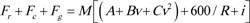 Where A, B, and C are the relevant coefficients for the running resistance, R is the curve radius in meters, and i is the thousandth of the gradient [20, 21]. In braking on a straight flat track, other terms are negligible except for running resistance.