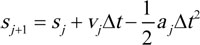 The time integration method, according to EN 14531 at the time t = tj+1 is expressed as follows. Where, j is the time integral segment, ∆t is the computational time interval, s is travel distance and α is deceleration.