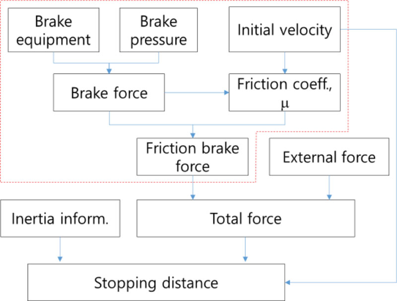 The braking pressure characteristics of the wagon are affected by the pipe and valves used. It also depends on the number of vehicles that make up a train. Models for estimating the braking pressure of the wagons are hydrodynamic and empirical methods. Hydrodynamic and empirical models are used to estimate the braking pressure of the wagon. A hydrodynamic model is a method of physically modeling a vehicle's brake system, such as pipes and valves and performing a fluid dynamic analysis. This method is useful for unknown brake systems, but it is difficult to model and verify all components of the brake system. The empirical method uses limited measurement results. The model has the limitation that it can be applied only to known brake systems, but it has the advantage of providing highly reliable information and a short calculation time [14].