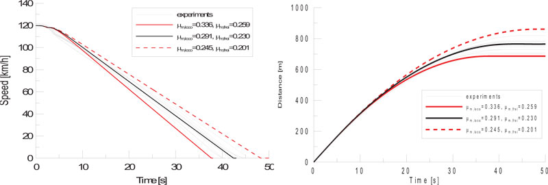 In particular, the statistical expansion method of the friction coefficient enables robust prediction of the distribution of the braking distance. The simulation can reduce or make up for costly and time-consuming repeated braking tests and reduce the risks that may arise during testing.