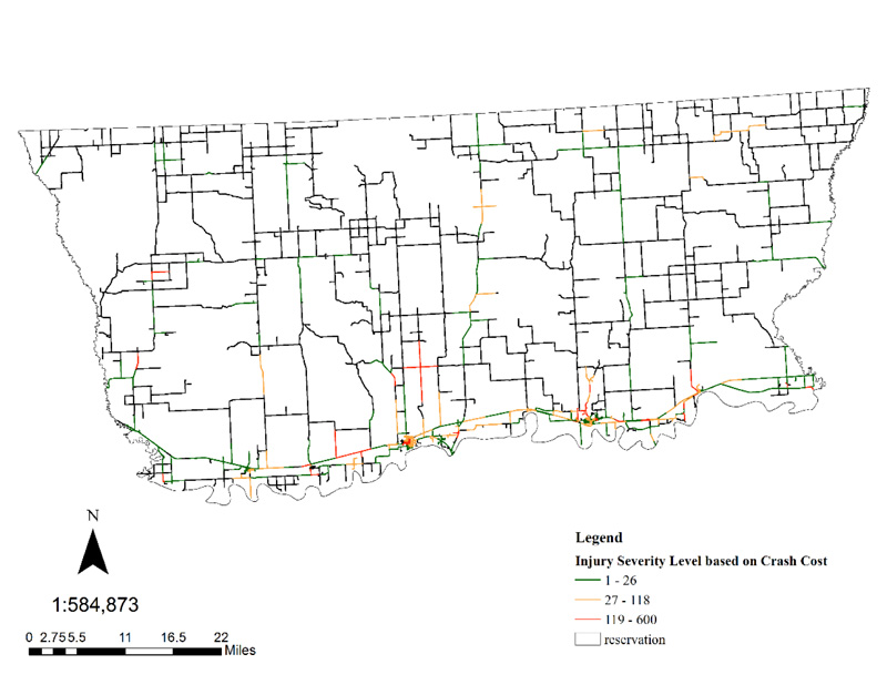 By better understanding where crashes occur, authorities and professionals can decide to utilize funds into areas with the largest impact. This methodology can be adapted in other areas to improve their roadway safety conditions with the marginal investment of resources. Along with the ease of approach, these maps can be used as a powerful visual aid. Tribes will be able to quickly identify the safety concerns without the use of complicated jargons or statistics.