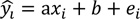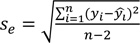 = the i-th dependent variable (estimate), xi = the i-th independent variable (observation), b = the y-axis intercept, ei = the i-th error, se = standard error of regression line, yi = the i-th observation, and n = number of samples.