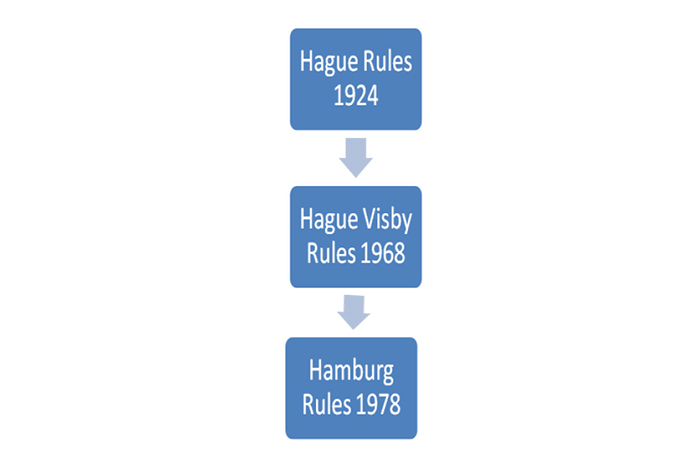 The laws concerning the carriage of goods by sea originated from the Harter Act 1893 of the United States of America, which was adopted by the Australian Sea Carriage of Goods Act of 1904 and Canadian Carriage of Goods by Water Act of 1910. These cts influenced the formulation of the Hague Rules of 1924 [1-3]. Subsequently, although Hague Rules set out standard basic obligations and responsibilities of the carrier and shipper for goods covered under a bill of lading, these rules were amended in 1968 by the Brussels amendments, and since then, are known as the Hague-Visby Rules. Moreover, though subsequent rules were later proposed by the United Nations, namely Hamburg Rules of 1978, which provided more protection to shippers, however, most of the countries still continue to endorse Hague/Hague-Visby Rules in the commercial documents.