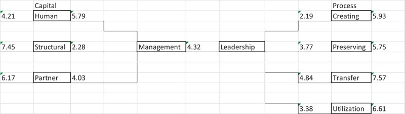 Knowledge management is essential for the development of organizational leadership and product innovation, especially in the automotive industry. The need to create a flexible internal environment conducive to open internal entrepreneurship and individual commitment to stable corporate creativity has also been mentioned in the previous literature [13]. A balanced (in combination with environmental conditions) organizational environment is very important for interprofessional activity, as it is driven by the goal of the prosperity of innovative human capital. It requires behavioral models for innovative ideas that translate new knowledge into the service industry, operational and management processes, an organizational structure, and process customization [14].