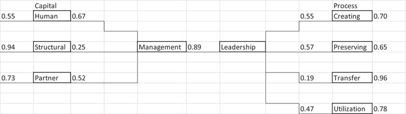 In accordance with modern scientific sources, the elements of the KMS are considered by managers and scientists as dependent variables, and the results of the functioning of such a system, that is, the processes of knowledge production and knowledge capitals, are considered as independent variables. A conceptual model for this study is shown in Fig. (1).