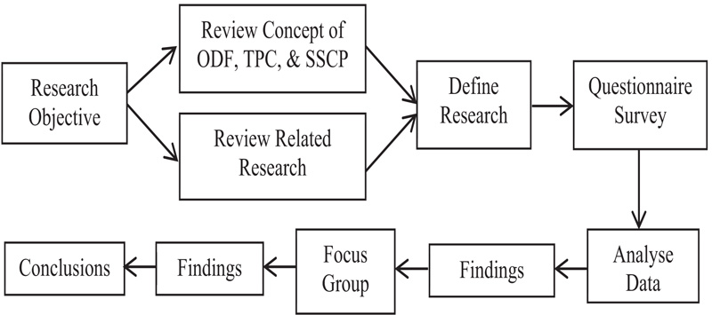 As shown in Fig. (2), from the research problem and research objectives, the study reviewed concepts from the past research; Organisational Driving Forces, Transportation Practices during the COVID-19 Crisis, and Sustainable Supply Chain Performance. The literature review was carried out on the related study published from the year 2016 until 2020. Based on the reviews, a research design explanatory-sequential mixed-method research has been initiated, the survey was conducted in the first stage. The study did data analysis by utilizing structural equation modelling through AMOS software. Besides, a focus group discussion was carried out, on which the findings were used to support the results from survey methodologies. The subsequent stage is discussion and ends with a conclusion of the study.