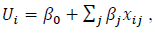 where Pr (yi) is the probability of observation i being a success. The term Ui is a utility function that is related to the independent (explanatory) variables in the following linear form (Eq. 2):