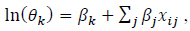 where βj are coefficients to be estimated and xij are observed explanatory variables associated with observation i.