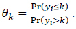 where θk represents the proportional odds of an equal or smaller response occurring (Pr(yi ≤ k) compared to a larger response occurring (Pr(yi > k) defined as follows (Eq. 4):