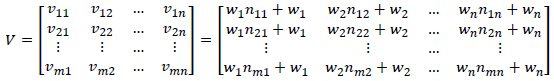 Step 3. Calculating the weighted decision matrix (V). The elements of the weighted decision matrix are calculated using Equation (11).