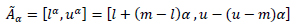 If we write a triangular fuzzy number as à = (l.m.u), then α-cut is performed on it as follows [49]: