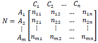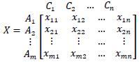 Step 1. In the first step, the initial decision matrix (X) is formed; the rows of this matrix represent the alternatives and the columns represent the evaluation criteria. In this matrix, each alternative is evaluated using the vector Ai = (Xi1,Xi2,...,Xin) , where represents the value of i-th alternative for the j-th criterion.