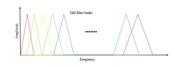 (3) Pass the power spectrum through a set of Mel scale triangular filter banks, typically 40 filter banks.