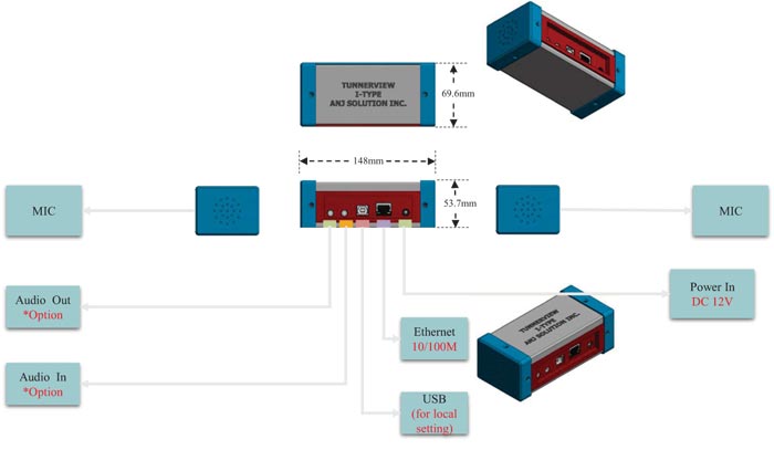 Experimental data is sound data collected from actual tunnels. The sound collector used includes MIC, audio input, output, Ethernet link, USB power, and other parts. The size of the entire device is about 148mm×69.6mm×53.7mm. This sound acquisition device has problems such as poor high-pass filtering performance above 6kH. The structure of a sound collector is shown in Fig. (2).