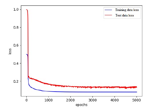 Fig. (20). The average loss change diagram of the training data set and the test data set during the neural network learning process.