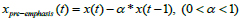 It can be seen from Fig. (4) that the accident sound is present in the high-frequency components because the high-frequency components in sound signals are more easily absorbed and blocked [13]. Pre-emphasis processing on sound signals can effectively supplement high-frequency components in sound signals. The Pre-emphasis can also reduce noise interference indirectly. Its function is usually implemented by using a first-order FIR digital filter [14]: