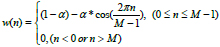 (2) where w(n) is the window function. M is the length of the window. When α is 0, the window is the “rectangular window”. As the value of α is 0.46, the window is the “Hamming window”. And α is 0.5, the window is the “Hanning window”.
