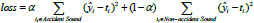 We will augment the accident data with augmentation methods. Although some accident sound data was added by using this method, it is still not enough. Therefore, accident sounds and non-accident sounds were selected for training in a certain proportion during the experiment. The data is prone to over-fitting or the phenomenon that most of the data is predicted to be a class with a high proportion. The result may be that the test data's accuracy is very high, but the recall is very low.