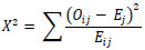 The expected cell frequencies were compared with the observed cell frequencies using the chi-square test, as estimated using Eq. (2) below.