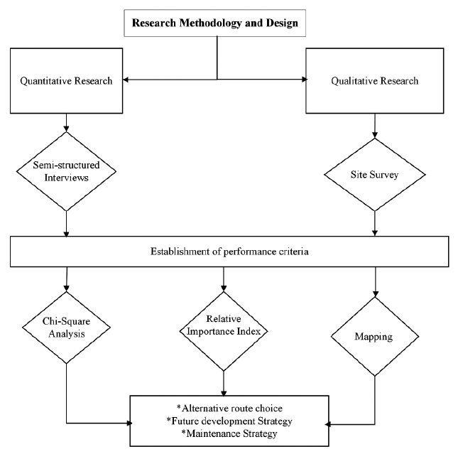 To fulfill the study's objectives, this study adopted a comprehensive mixed-methods approach, seamlessly integrating both qualitative and quantitative research techniques (Fig. 2). For the qualitative component, an exhaustive site survey was conducted, meticulously assessing pedestrian walkways spanning from selected peri-urban to urban areas. On the quantitative front, structured surveys were distributed to pedestrians actively utilizing the designated routes, capturing valuable data regarding their experiences and patterns of usage.