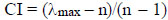 Step 6: Calculating consistency Index, CI, as a measure of deviation or degree of consistency using the following equation: