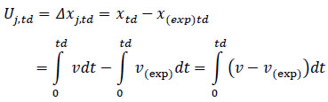 In this paper, we assume that before the start of a journey, each driver has some expectations about its duration. A driver arrives on time at their destination when their location at the expected time is identical to their actual location x(duration)actual=x(duration)expected. However, the drivers’ initial expectations might not be accurate, either because they misinterpreted the conditions before starting or because of unexpected events that occurred during the journey. In this case, they can either change their expectations or try to fulfill them, changing their driving behavior. The main assumption of this paper is that when unexpected events occur, a number of drivers will change their behavior to arrive on time, resulting in car accidents. Therefore, for driver j, we assume that her target is to minimize the difference between her expected and actual journey duration. Equivalently, keeping the duration constant and equal to the expected duration to minimize the difference between her hypothetical location and her actual location. Uj in Eq. (1) represents the utility of the driver at the end of the journey. In Eq. (1), td represents the expected duration of the journey, and v is the velocity of the driver. Throughout the following sections, exp is used to indicate a variable of expected values. If there is no exp indicator, the variable represents the actual conditions.