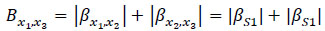 For two consecutive road parts {x1, x2} and {x2, x3} (or S1, S2), we define the parameter B, as the overall internal power of the road segments in Eq. (11):