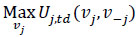 Eq. (1) represents the utility of the driver j at the end of the journey (t=td). However, throughout the journey, the drivers make estimates and assumptions about the duration of their journey. They often try to assume (consciously or not) if they are going to arrive on time or not. This allows us to define a utility for each driver for every possible time t value (Eq. 2).