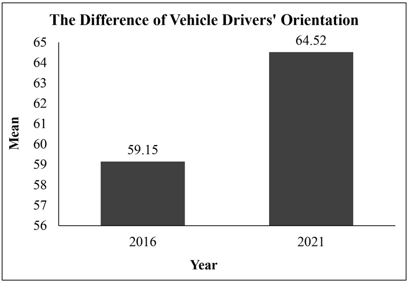 In order for the researchers in the current study to verify the improvement of vehicle drivers’ orientation towards the system over time, they obtained the responses of part of the target sample after five years. The results showed differences between the study sample responses after the application of the system in 2016 in Dammam and the same sample after five years, which means they improved their orientation.