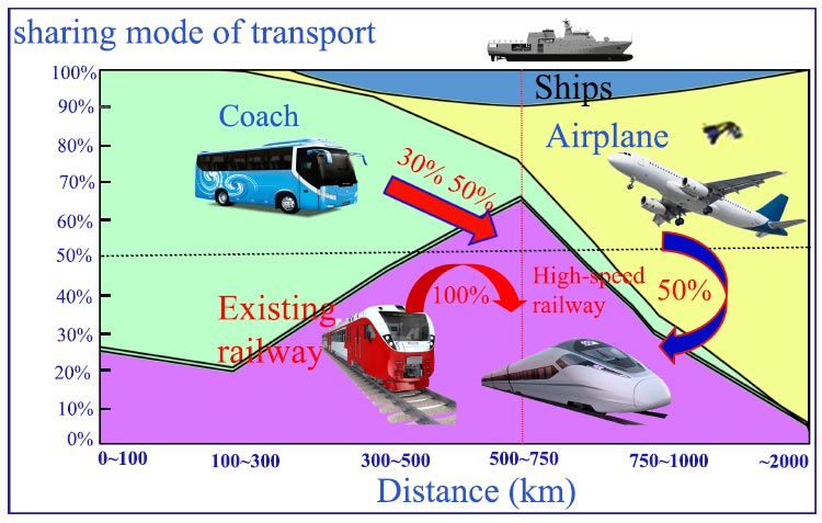 Passenger transport mode splitting model for the North-South high-speed rail line [4].