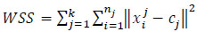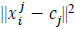represents the ith data point in the jth cluster; cj is the centroid of the jth cluster; and