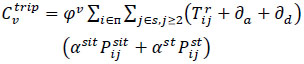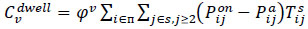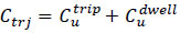 The cost of passenger dwell time in a vehicle consists of two components: the cost of trip time between stops, i.e. Cvtrip, and the cost of dwell time at stops, i.e. Cvdwellj (Eqs 9-11).