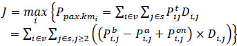 In this given Eq. (1), the objective was to maximise the effectiveness of the passenger transportation process in a scenario of urban agglomerations (Eqs 3 and 4):