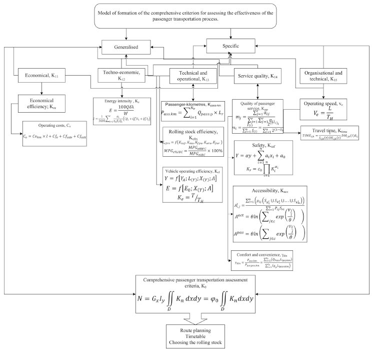 In order to assess the efficiency of the passenger transport process, it is necessary to define an optimization criterion, which should allow for a comprehensive evaluation of the system. These can be generalized or specific effectiveness criteria that take into account all the main indicators or only some indicators of vehicle efficiency in the organization of the transportation process or reflect specific features of the vehicle in the transportation process [59, 60]. (Fig. 3).