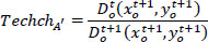Similarly, the efficiency change ratio of country A, TechchA', between t and t+1 using inputs and outputs at time t+1 is determined as (Eq. 5):